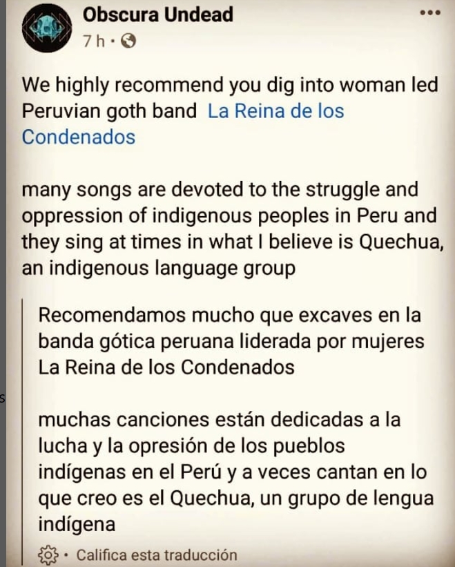 Portada de entrevista a La Reina de los Condenados: Rock/ Post-punk gótico y cosmovisión andina. Por: Dela Núñez, Subte Rock