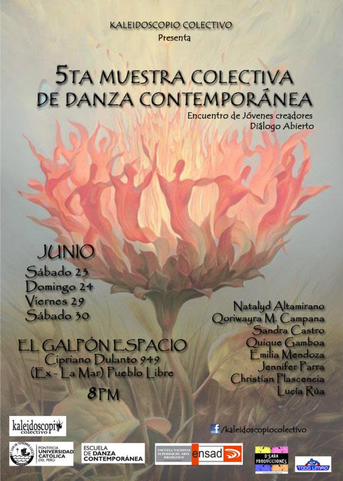 Participación como bailarina intérprete en la IV Muestra de Danza Contemporánea Producción de Kaleidoscopio Colectivo y Escuela Nacional Superior de Arte Dramático. Dirección : Christian Plascencia Gamarra.(Ver más)